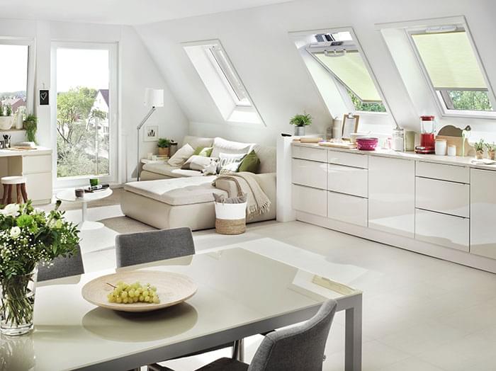 Mit großflächigen Dachfenstern bringen Sie etwas Entscheidendes in Ihr Dachgeschoß-Leben: Licht! Das natürliche Tageslicht ist gut für das Wohlgefühl, die Gesundheit und im Vergleich zu künstlichem Licht zum Nulltarif zu haben. Es ist gesünder für die Augen und hebt die Leistungskraft und die Laune. Mit einem Dachflächenfenster holen Sie sich bis zu einem Drittel mehr Licht in Ihr Dachgeschoß als mit einem normalen Fenster.Die Flick GmbH baut Ihnen Dachflächenfenster aller gewünschten Größen renommierter Hersteller wie Roto oder VELUX ein und verkleidet diese fachmännisch. Wir passen die Fenster an Ihre spezielle Einbausituation an und bieten Ihnen im Bedarfsfall passende Austauschfenster, so dass Ihre Innenverkleidung nicht abgerissen werden muss.