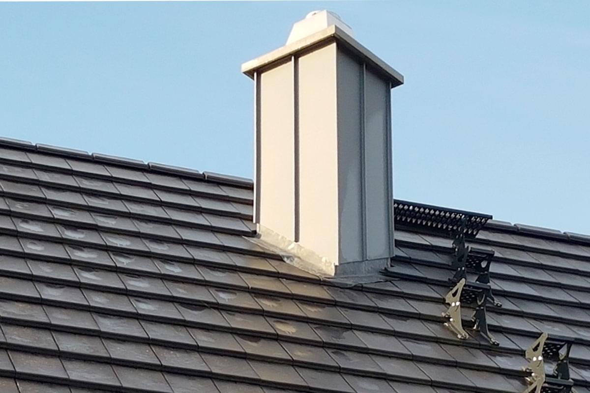 Auch wenn in vielen Häusern infolge moderner Energieträger gar kein Schornstein mehr benötigt wird, bleibt er doch der krönende Abschluss des Hauses, mit dessen Erhalt man sich alle Arten der Heizung offen hält. Neben Fassaden- und Gaubenverkleidungen gehört natürlich auch das Verkleiden der Schornsteine zu unseren Angeboten. Wichtig hierbei ist die gründliche Ausbildung der Details, welche ein profundes handwerkliches Können voraussetzt. Dazu zählt auch die passende Schornsteineinfassung und -abdeckung. Als Materialen verwenden wir die bewährten Baustoffe Naturschiefer, Stehfalzverkleidung aus Zink oder Kupfer oder Faserzement. Bei der Wahl von Material, Farbe und Gestaltung lassen wir uns von Ihren individuellen Wünschen leiten und finden gemeinsam die beste Lösung. So sind z.B. durch zeitgemäße Verfahren bei der Schieferproduktion auch attraktive Schieferverkleidungen erschwinglich geworden.